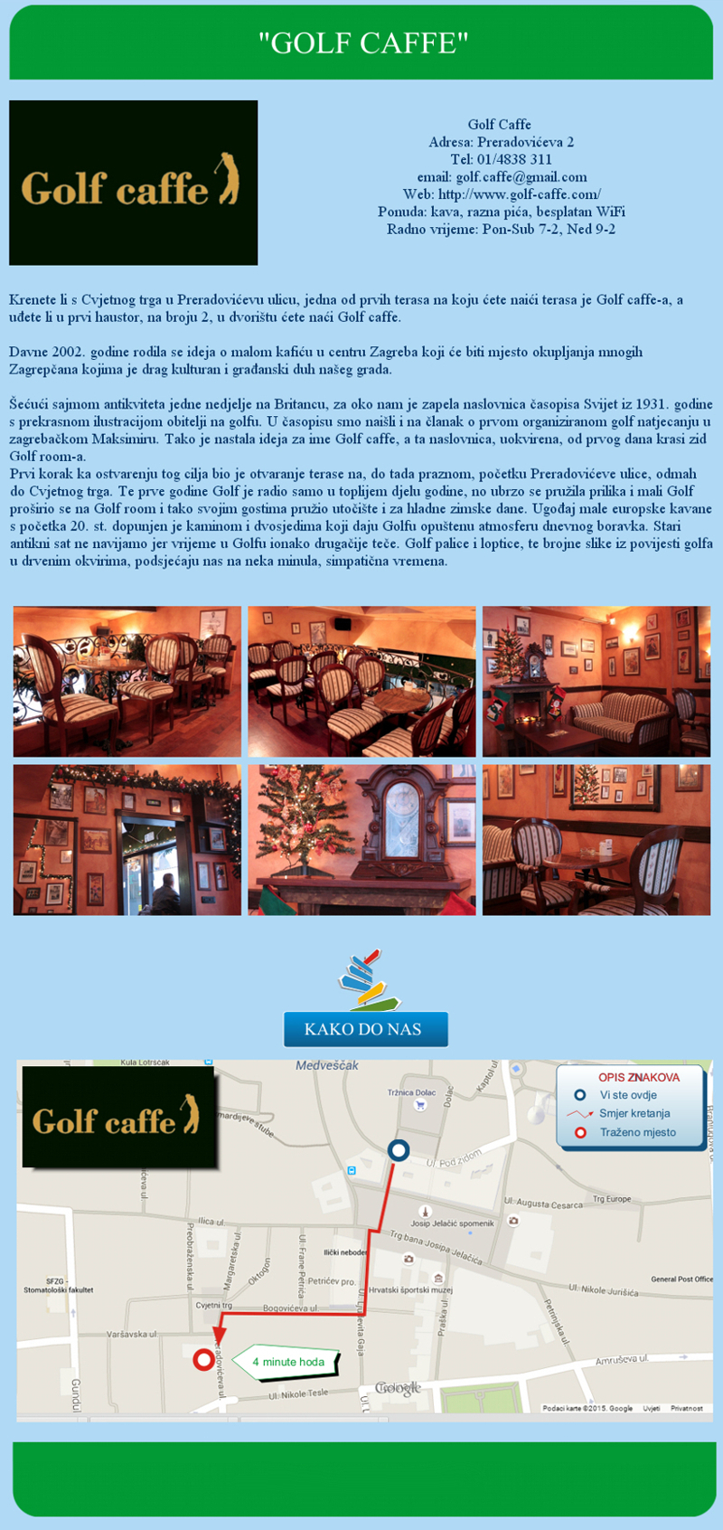detaljnim opisom poslovnog subjekta, slikama i kartom sa